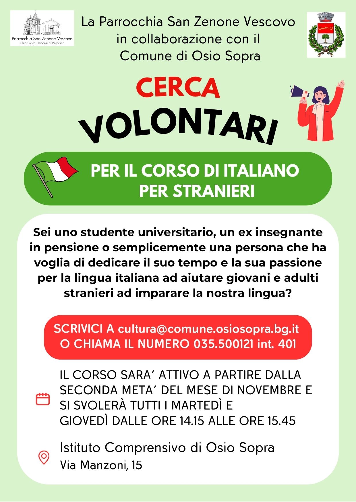 Il corso sarà attivo a partire dalla seconda metà di novembre e si svolgerà tutti i martedì e giovedì dalle ore 14.15 alle ore 15.45 presso l'I.C. di Osio Sopra.